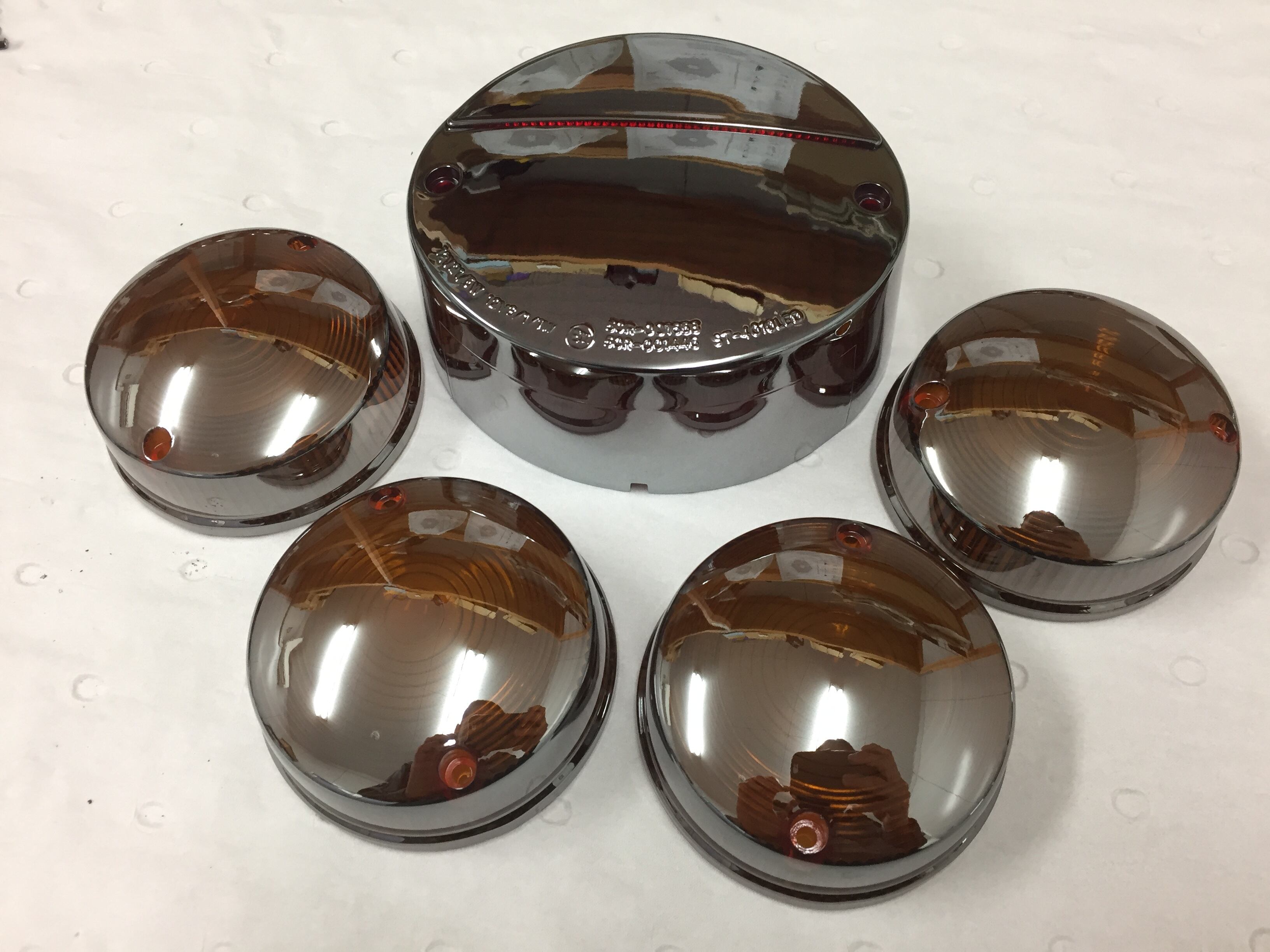 カワサキのZ2タイプの社外ウインカーレンズにクロムスパッタリングメッキで透かしメッキ加工しています。